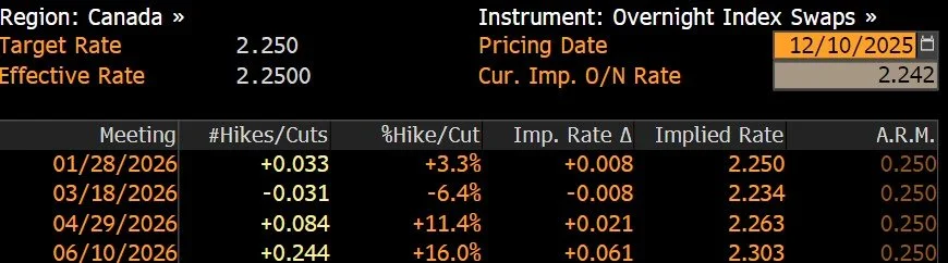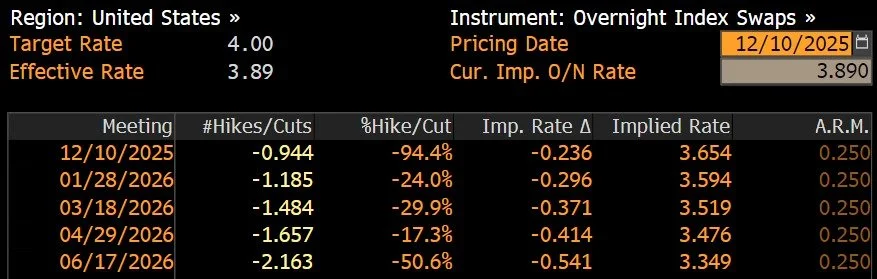World Interest Rate Probability - Source: Bloomberg - December 10, 2025