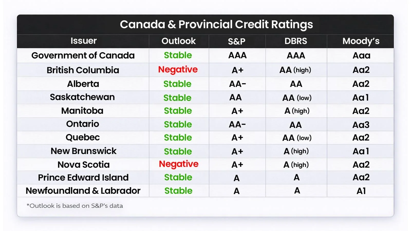 This latest action builds on a series of changes over the past two years. In April 2024, Moody’s revised BC’s outlook to negative, reflecting growing concerns around the province’s fiscal trajectory. In April 2025, the province lost its Aaa rating and was downgraded to Aa1. The most recent downgrade to Aa2 suggests that the pressures identified earlier have not improved and, in some cases, have become more entrenched. What was initially viewed as a deterioration in outlook has now translated into a sustained decline in credit quality.